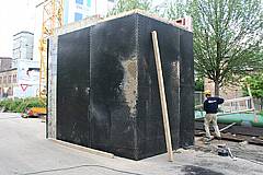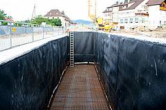Bei dieser Variante wird die Decke vor der Betonage von oben verschweißt. Das Spart Zeit und verhindert ein Eindringen des Beton zwischen Schalung und Auskleidung / Abdichtung.